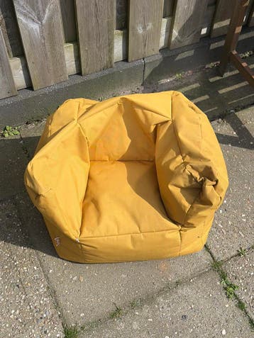 Jolijn zitzak in een gele kleur. De zitzak is gebruikt en heeft een paar vlekken maar past in de wasmachine. De zitzak is nog stevig en zit comfortabel. Voor kids