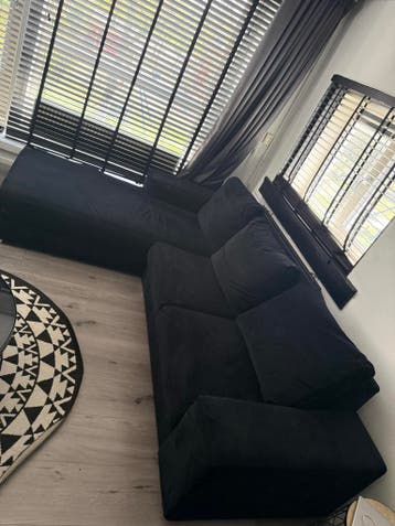 Mooie en comfortabele zwarte hoekbank, ideaal voor een gezellige zithoek. De bank is gebruikt, en heeft gebruikssporen (zie foto) maar biedt voldoende ruimte voor meerdere personen. Perfect voor ontsp