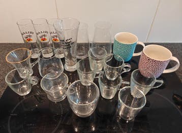 Verschillende longdrink en thee glazen en 2 mokken ophalen in arnhem, klarendal