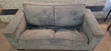 Tweezits, ribstof, grijs, let op: bank is doorgezakt!