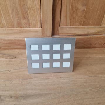 Fotolijstje 20,5cm x 25,5cm metaal. In het lijstje passen 12 kleine fotootjes met afmeting 3cm x 4cm met standaard voor zowel portrait als landscape.