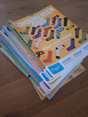 Een stapel consumentengidsen van september 2023 tot en met maart 2026. Ze zijn als nieuw.