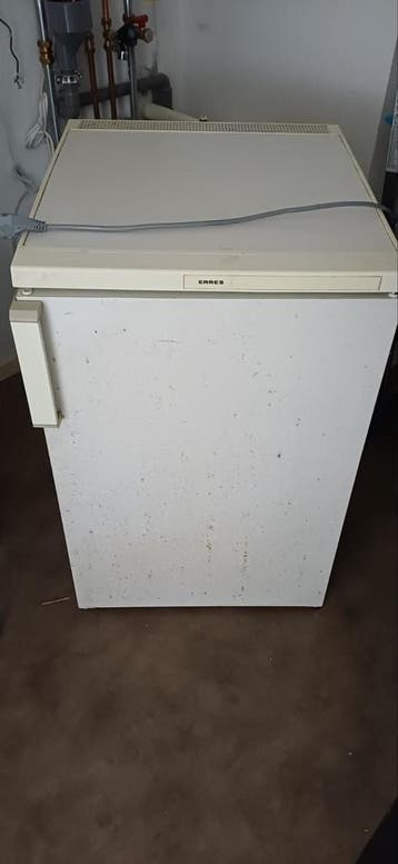 Een witte koelkast van het merk erres. De koelkast is gebruikt (zie fotos) maar werkt. Gratis af te halen