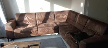 Gratis op te halen. Hoekbank, ong. 2,60M x 2,40m, met beschadigingen. Op een zitplek is de veren door de bodem heen geschoten. Kuilvorming. Zie 2e foto in 3 delen losneembaar. Staat op pootjes, ongev