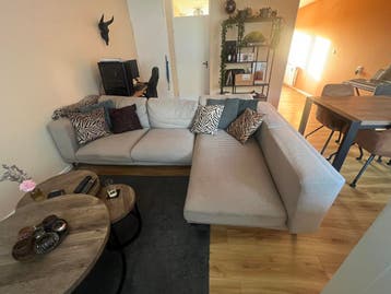 Zelf uit elkaar halen en meenemen. Leeftijd bank: 7,5 jaar oud afmetingen: lengte bank 280 cm hoogte bank 70 cm lente hoekstuk 170 cm breedte hoekstuk 100 cm breedte zitplaats midden 90 cm hoogte zitg