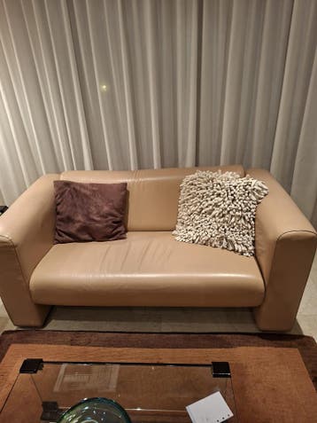 Tegen elk aannemelijk bod! Leren bankje, crêmekleurig. Breedte: 160 cm lichte gebruikssporen aan de leuning. Merk topform