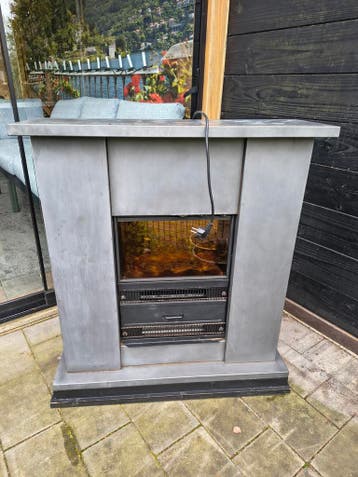 Deze elektrische kachel heeft 3 standen en verlichting. Leuk voor in een overkapping of tuinhuis. De kachel heeft wel een opknapbeurt nodig.