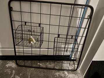Leuk industrieel foto rek met mandjes nog een aantal wasknijpertjes voor het ophangen van foto’s 68x68 cm