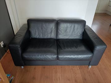 Leren tweezitsbank, zwart. In nette staat. Van piet klerck. Ophalen met 2 personen