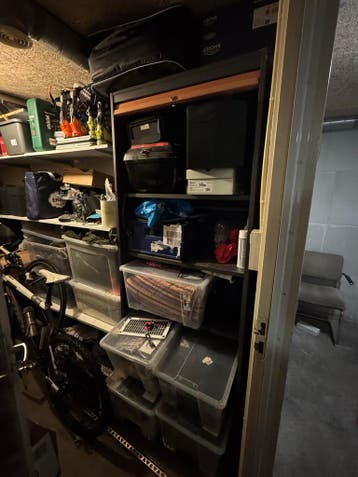Gratis af te halen opslagkast. De kast is leeg en klaar voor transport. Ideaal voor het opbergen van diverse spullen in bijvoorbeeld een garage, schuur of berging. De kast is gebruikt, maar nog in goe