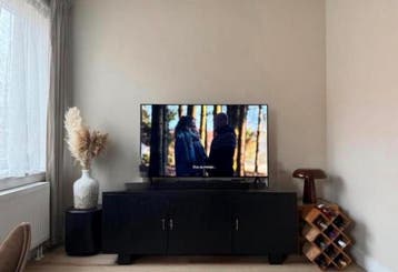 Mooie zwarte houten dressoir van 160x50x60 (lxbxh). De kast is zwart geschilderd, hier onder zit een mooie bruine kleur (zie laatste foto). Er is geprobeerd te wrappen, maar dat gaf niet het gewenste