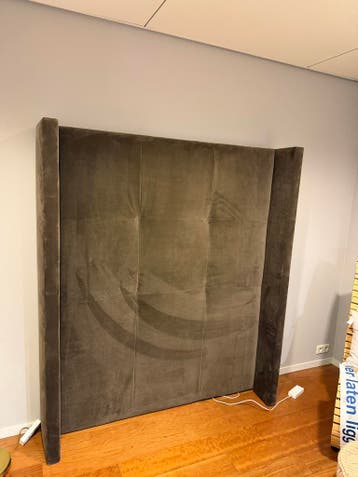 Hoofdbord voor een boxspring. Het is gemaakt voor een boxspring van 140 cm breed. Het hoofdbord is 180 cm hoog. De stoffering is van luxe velours in een bruine kleur. Het hoofdbord heeft een gecapiton