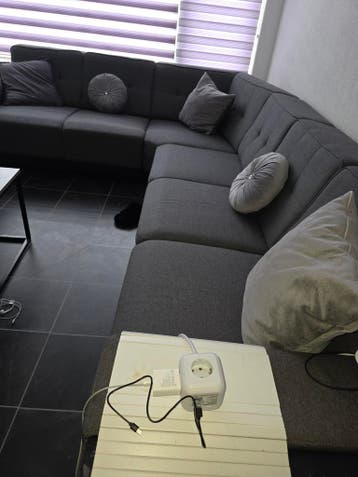 Comfortabele grijze hoekbank. Heeft enkele kattenkrassen, maar is verder in goede staat en biedt nog veel zitcomfort. Moet zo snel mogelijk weg