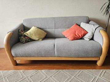 Degelijk bankje. Stevige zitting. Ooit professioneel opnieuw gestoffeerd. Afmetingen: breedte max 177 cm zitdiepte 55 cm zithoogte 39 cm totale diepte 80 cm breedte zitting 144 cm hoogte leuning vanaf