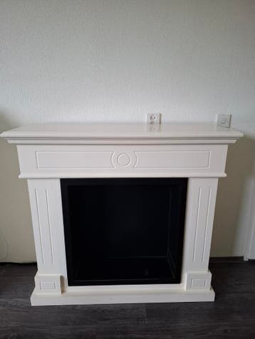 Een creme schouw van 107cm breed, 100cm hoog en 39cm diep. De schouw is een opknapper, zoals te zien op de foto's. De binnenkant is zwart.