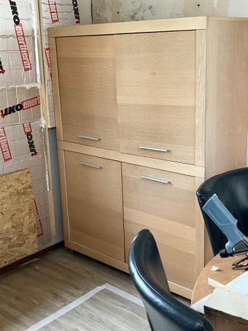 Mooie degelijke kast. Blank eiken wegens verbouwing geen plaats er meer voor. Hoogte 160 breed 121 diep 45
