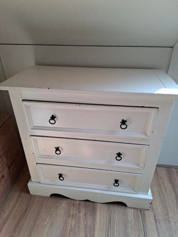 Gebruikte ladekast met 3 laden. 86 Cm hoog. Heeft gebruikerssporen maar kan nog prima voor in de schuur of iets dergelijks. Zie foto's voor afmetingen. Ophalen
