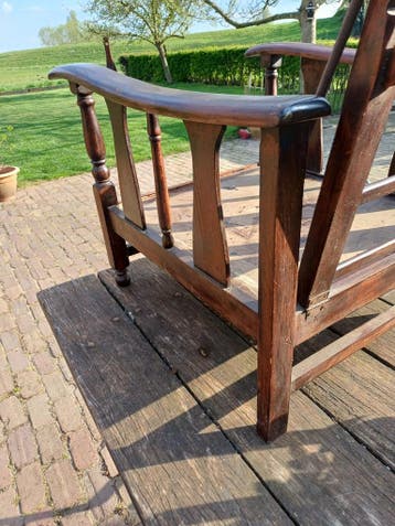 Oude instelbare "rookstoel" . Het houtwerk is nog erg mooi. De kussens zijn verdwenen.