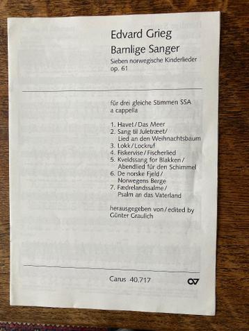 Koorpartituur barnlige sanger van grieg
