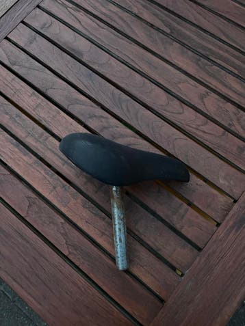 Dit is een zwart zadel voor een kinderfiets. Het zadel is gebruikt. Alleen ophalen