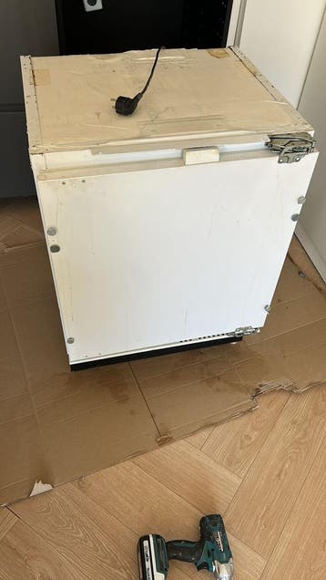 Moet uiterlijk zaterdag opgehaald worden! Een inbouwvriezer met drie transparante lades. De vriezer is wit en heeft een deur die naar rechts opent. Er zit een stekker aan.