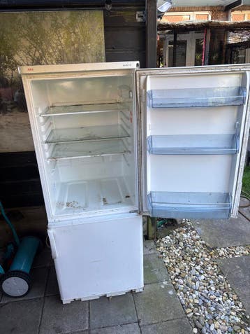 Deze aeg santo koelkast werkt nog goed. Hij is wel vies en moet schoongemaakt worden. Er zit een vriesvak in.