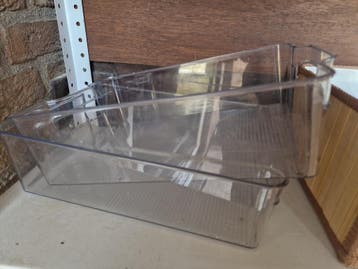 Deze set van twee transparante opbergbakken is ideaal voor het organiseren van diverse spullen in huis, zoals in de keuken, badkamer of kantoor. Gemaakt van duurzaam kunststof, zijn ze gemakkelijk sch