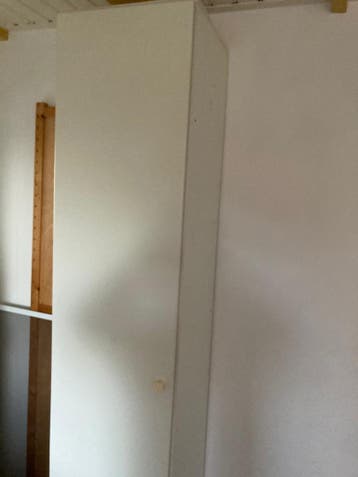 Witte svedex slaapkamerkast met 7 planken. Buitenmaat 45 x 45, 227 cm hoog. Gratis af te halen.