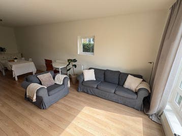 Grijs ikea bankstel. Wel wat gebruikerssporen maar nog prima met bijpassende stoel.