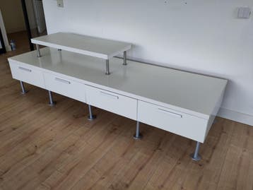 Witte tv meubel 4 lades 205 cm breed | 65 cm diep | 41 cm hoog plateau voor tv: 95 cm breed | 40 cm diep | 19 cm hoog dus in totaal: 60 cm hoog duidelijke gebruikssporen, daarom gratis