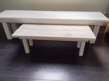 Bijzettafel in de maten 100 cm breed, 35 cm hoog en 39 cm diep. 2E tafel is 175 cm breed, 44 cm hoog en 40 cm diep. Ook nog zelfde tafel in de maten 80 x 80 cm, 48 cm hoog en in de maten 100 cm breed,