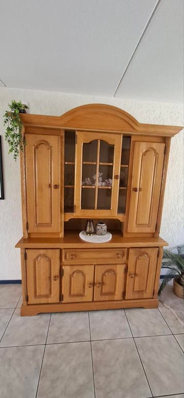 Mooi compleet woonkamer interieur aangeboden. Bestaande uit een grote buffetkast 210 hoog en 155 breed en diep 50 cm, een dressoir met spiegel hoogte is 86 cm en breedte is 175 en diep 55 cm en een sa