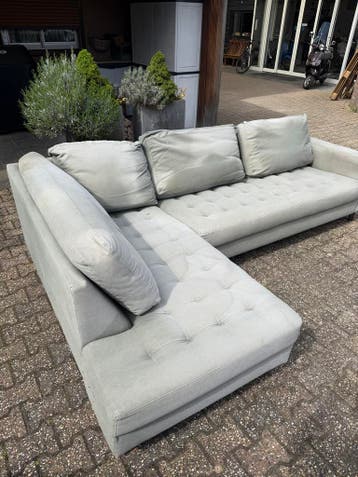 Groen grijze hoekbank. De bank is iets verkleurd, maar verder helemaal heel. Zit nog perfect. Gratis af te halen voor een kratje hertog jan.
