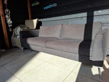 Gratis ophalen. Prima bank. Zit lekker. Met wat beschadigingen aan beide leuningen door de poes. Breed 2 meter. Staat nu even onder de veranda ivm nieuwe bank.