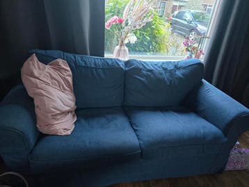 Fijne blauwe bank om in te zitten. Geen beschadigingen of vlekken. Gratis.