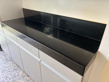 Wegens de aanschaf van een nieuwe keuken bieden wij deze twee robuuste natuurstenen bladen aan. De bladen komen uit een siematic-keuken en zijn van zeer degelijke kwaliteit. • blad 1: 266 cm (len