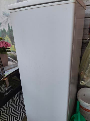Een witte koelkast, hoog model. Gratis