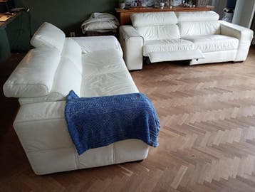 Gratis af te halen in meijel. Twee leren 2,5 zits banken waarvan 1 met twee relax delen. De zijkanten van de banken zijn wat bekrast door katten, dat zou je kunnen bedekken met dekentje of aftimmeren.