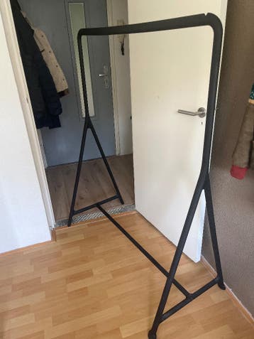 Hij is ooit gebroken. Vast gezet met schroeven. Geloof niet dat die nog uit elkaar gehaald kan worden volledig stevig. Breed 117cm hoogte 150cm diepte 50 cm