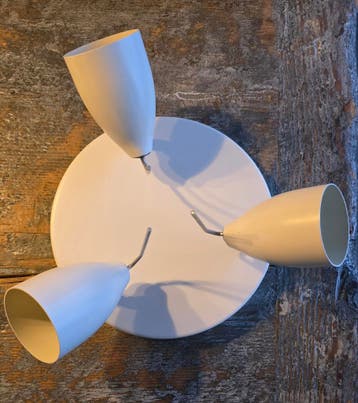 Deze nette, witte plafonnière heeft 3 spots en is gekocht in een lampenwinkel. De lamp werkt goed. Wordt aangeboden i.v.m. Overcompleet. Bieden graag naar waarde! Versturen geen probleem.