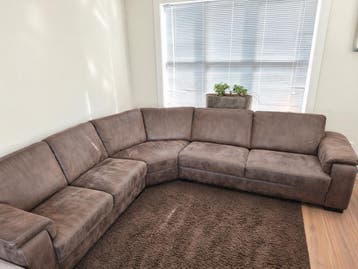 Deze hoekbank is nog goed voor een tweede ronde. De bank heeft een bruine kleur en is gemaakt van stof. Hij is lekker ruim en zit comfortabel. 260 X 230