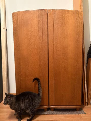 Twee mooie stevige kasten maten: hoogte 144 cm (binnenmaat 127 cm) breedte 47 cm (binnenmaat 41,5 cm) diepte 44 cm (binnenmaat 44 cm) drie verstelbare planken per kast