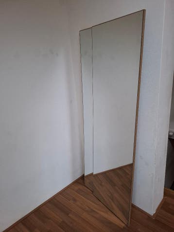 Twee spiegels, van 167 x 50 cm. Beide spiegels waren ooit deel van een kast (vandaar de ronde 'gaten' in de achterkant, zie 4e foto). Ik kan ze helaas niet meenemen nu ik ga verhuizen, maar ze