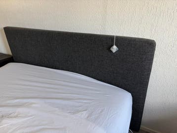 Hoofdbord, slechts 1 jaar oud. De afmetingen zijn 177cm breed en 100cm hoog. Bevestigingen (schroeven kwijt door verhuizing)