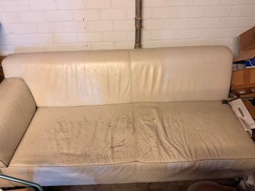 Gratis l-vormige bank op te halen. Het andere gedeelte van de bank staat nog boven en is niet gefotografeerd. De bank heeft duidelijke gebruikssporen, zoals te zien op de foto's. Ideaal voor wie e