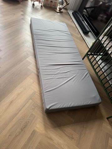 Een grijs matras, geschikt voor een eenpersoonsbed 80x200 cm. Zeer dun schuimmatras. Zeer goede staat. Werd gebruikt als logeermatras, max 10 keer op geslapen