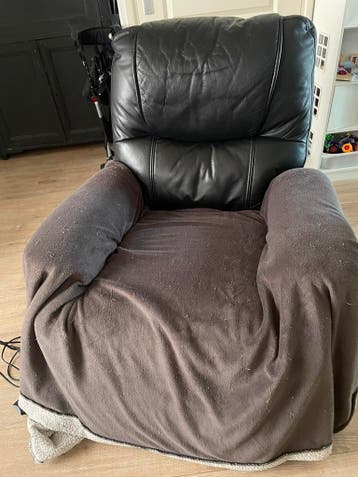 De stoel werkt perfect, zeer weinig gebruikt door mijn vader. Wel door onze katten gebruikt als krabpaal. Lappen bestellen bij chinese winkel en opknappen voor weinig. De stoel staat bij ons in de weg