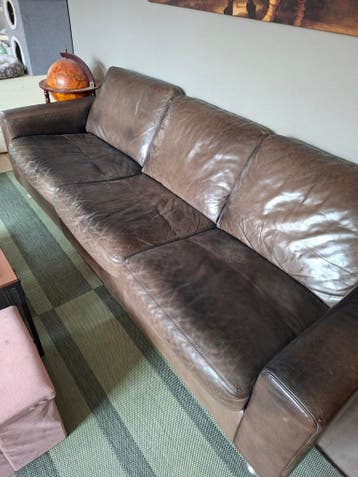 Mooie leren bank van het merk montel in een bruin/taupe kleur. Deze bank zit heerlijk en is niet doorgezakt, wat garant staat voor langdurig comfort. Ideaal voor wie op zoek is naar een duurzame en co