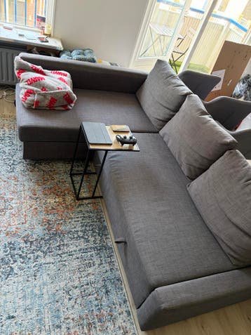 Deze veelzijdige grijze hoekbank is de perfecte aanvulling op elke woonkamer. Overdag biedt het comfortabele zitplaatsen voor het hele gezin, en 's nachts tover je hem eenvoudig om tot een ruim tw