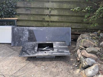 Alleen nog het blad met gootsteen beschikbaar: blad met gootsteen: 122,5/60 keuken uitgesloopt; mooi blad wat we zelf niet willen. Op fotos onder het stof maar schoon mooi zwart. Gratis ophalen, voor